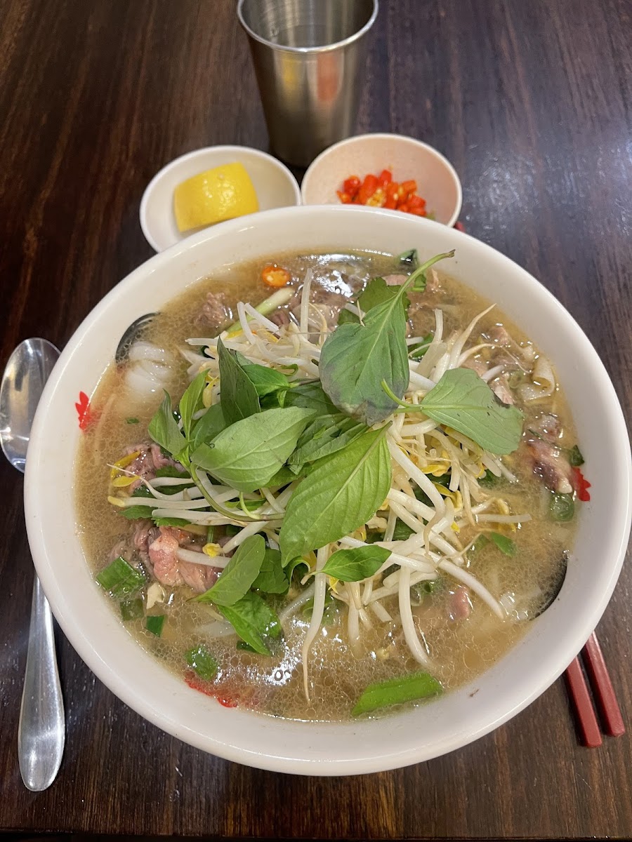 The menu is focused and thoughtfully put together, highlighting dishes that showcase balance, freshness, and bold seasoning. One of the standout options is the sliced rare beef pho, served with a deeply aromatic broth that feels slow-cooked and carefully seasoned. The beef remains tender, soaking up flavour without overpowering the dish. Alongside it, the chicken pho offers a lighter yet equally satisfying experience, with clean flavours that feel comforting and familiar.